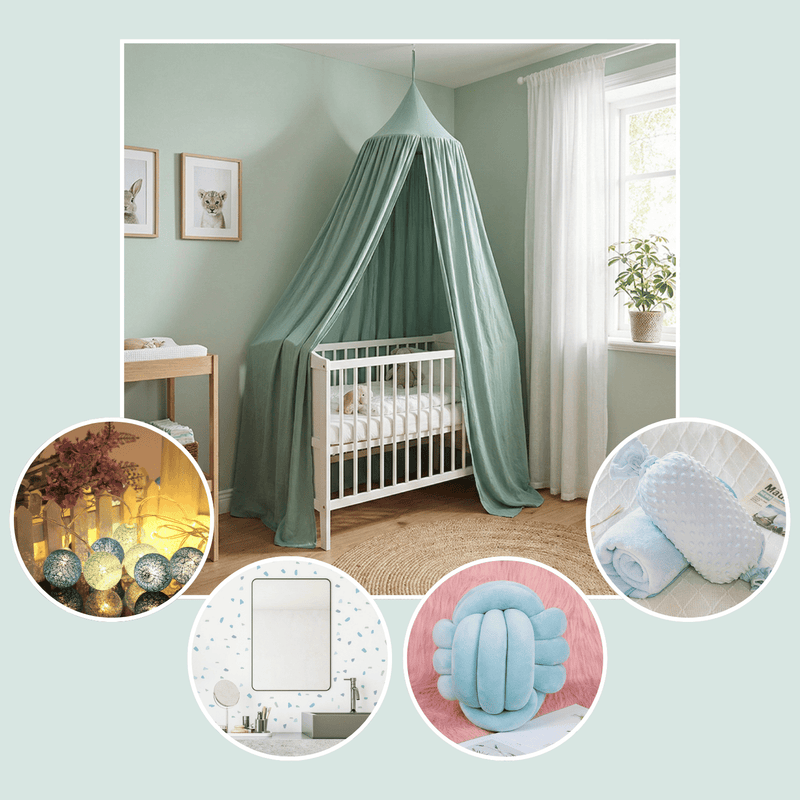This all-in-one décor combo features a sea foam hanging tent canopy, turning any corner into a snug hideaway for reading, quiet play, or imaginative adventures. The 10 blue cotton ball string lights add a soft, magical glow, creating a calming atmosphere perfect for bedtime routines or cosy evenings.